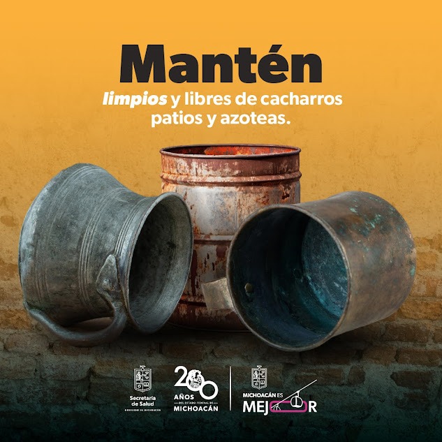 Morelia, Michoacán, 24 de Noviembre de 2024.- La Secretaría de Salud de Michoacán (SSM) informa a la población que el dengue no se detiene ante la llegada del frío, por lo que los invita a no bajar la guardia con la estrategia lava, tapa, voltea y tira todo aquello que acumule agua, para evitar su propagación.