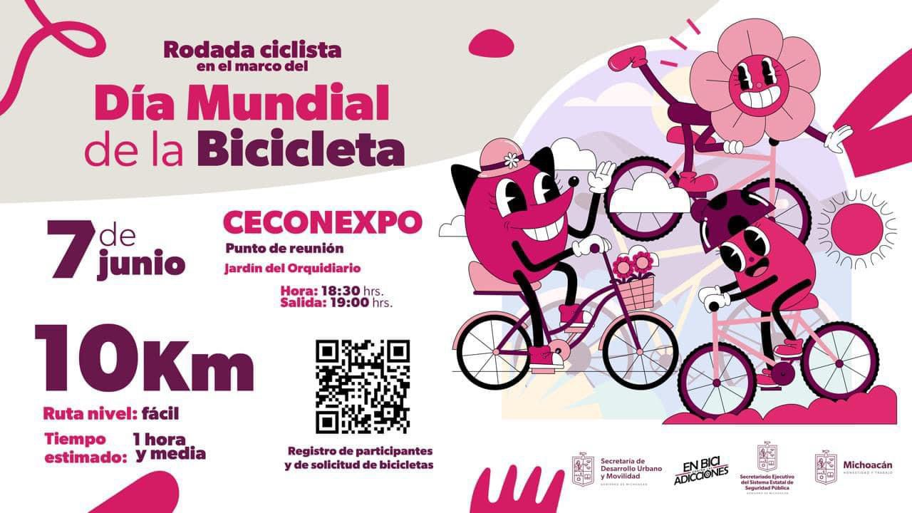 Morelia, Michoacán, 5 de Junio de 2024.- En el marco del Día Mundial de la Bicicleta, celebrado el pasado 3 de junio del año en curso, la titular de la Secretaría de Desarrollo Urbano y Movilidad del Estado de Michoacán (Sedum), Gladyz Butanda Macías, invita a las y los michoacanos a formar parte de una rodada para impulsar y promover el uso de este modo de transporte.