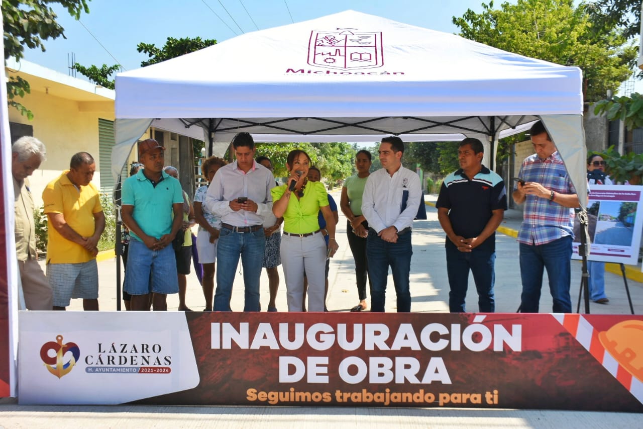 En compañía del Titular de SCOP, el Ing. Rogelio Zarazúa Sánchez, la Presidenta Municipal, Itzé Camacho, reconoció el trabajo que realiza el Gobierno Estatal para atender las obras pendientes en varios municipios, ya que en este primer año Lázaro Cárdenas se benefició con ocho pavimentaciones, de las cuales cinco hoy fueron entregadas.