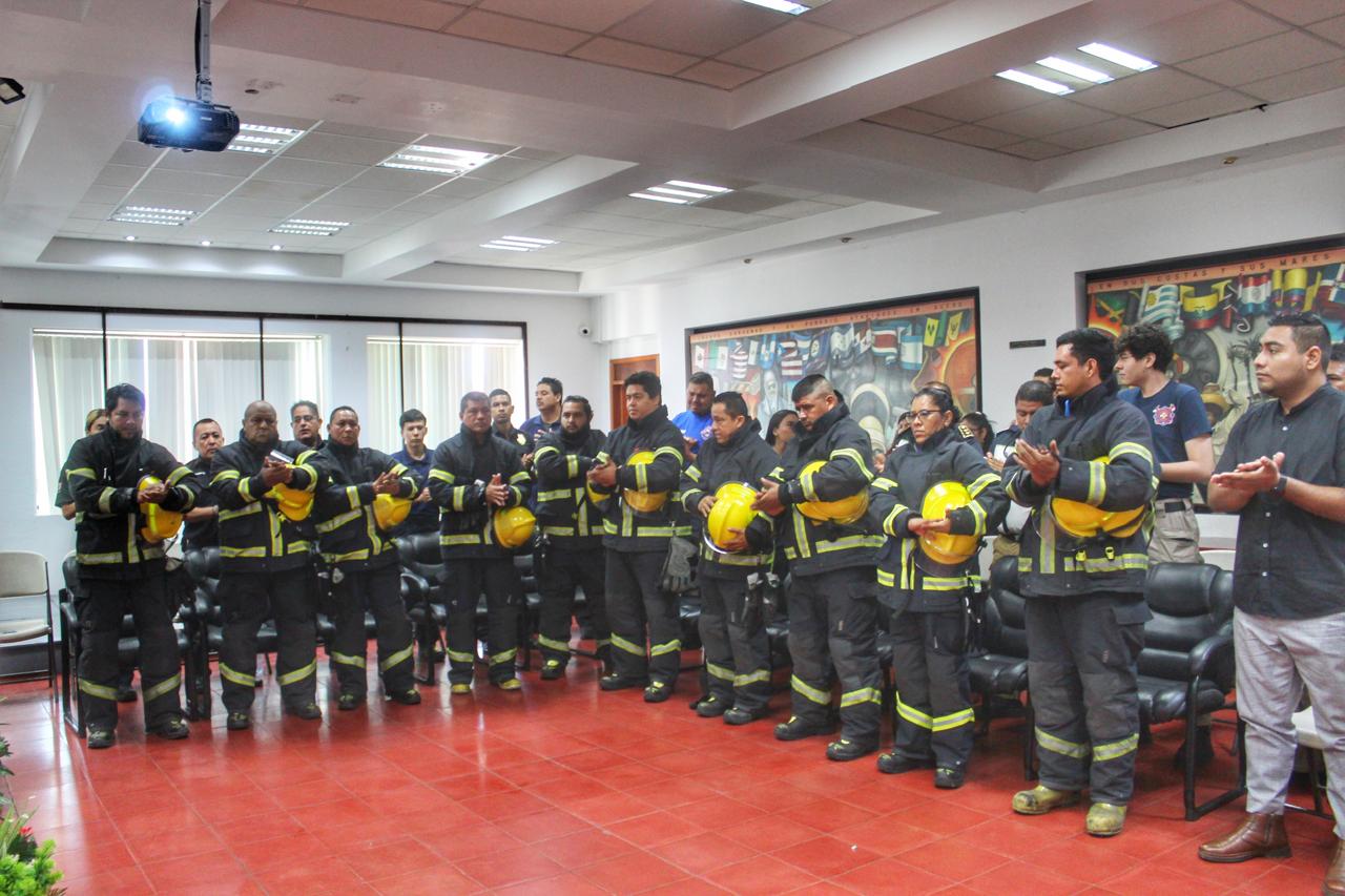 Siguiendo con la ceremonia se entregó reconocimientos a los bomberos: Reyes Normandez Zarate, Emilio Pacheco Rosales, Noé Quevedo Díaz, Benigno Luengas López, Yair Miranda Ramos, Jonathan Felipe Valdovinos Vázquez, Ezequiel Artemio Mendiola Pedraza, Luis Alberto González Sánchez, José Salvador Medina Campos, Lorena, Cárdenas Sánchez, Eliel Romero Flores, Héctor Guillermo León Hernández y Oscar Samuel Díaz Aguilar.