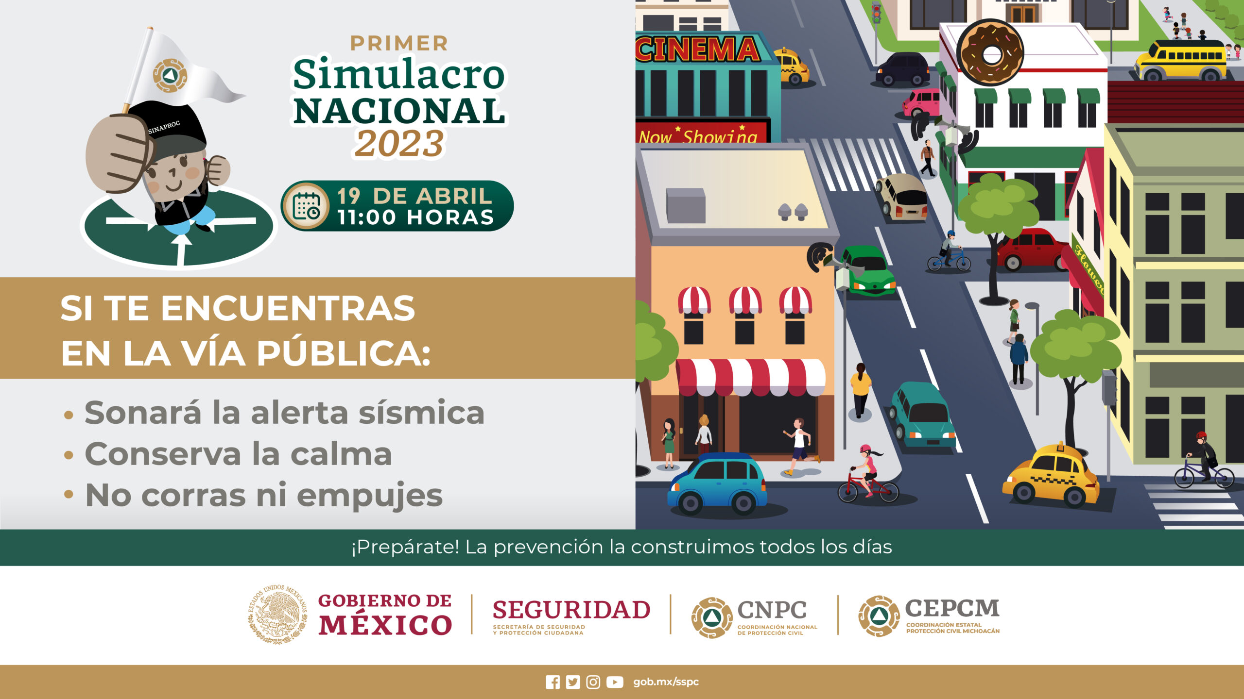 Morelia, Michoacán a 18 de Abril de 2023.- El estado de Michoacán participará en el Primer Simulacro Nacional de Sismos 2023 a efectuarse este miércoles 19 de abril con casi mil 600 inmuebles, que, a la fecha, se han registrado en la plataforma de Protección Civil federal.