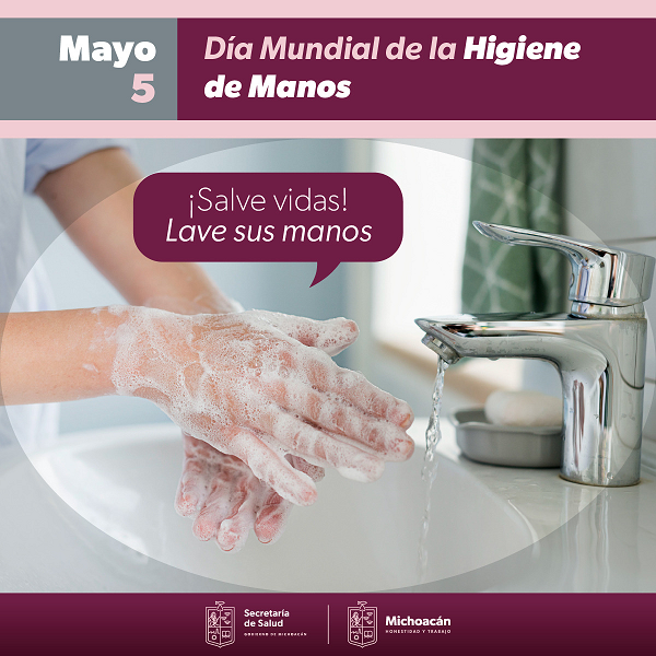 Morelia, Michoacán a 05 de Mayo de 2023.- Bajo el lema ¡Salve vidas! Lave sus manos, la Secretaría de Salud de Michoacán (SSM), conmemora el Día Mundial de la Higiene de Manos, fecha dedicada a incrementar el conocimiento de esta práctica efectiva y económica que puede prevenir enfermedades y salvar vidas.
