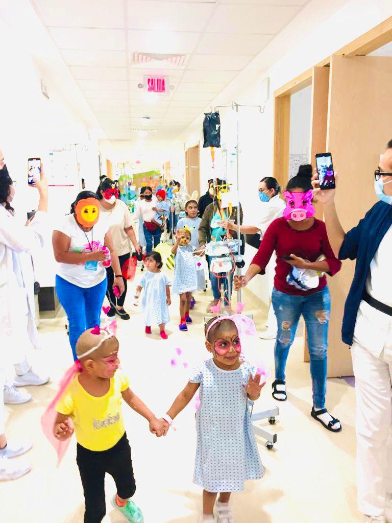 Durante el recorrido, los 15 pequeños que se encuentran actualmente hospitalizados en el área de oncología, recibieron el aplauso de muchos padres y madres de familia que se encontraban en el hospital en espera de consulta, de sus enfermeras; además de que cantaban y bailaban al caminar con su carita sonriendo en todo momento.