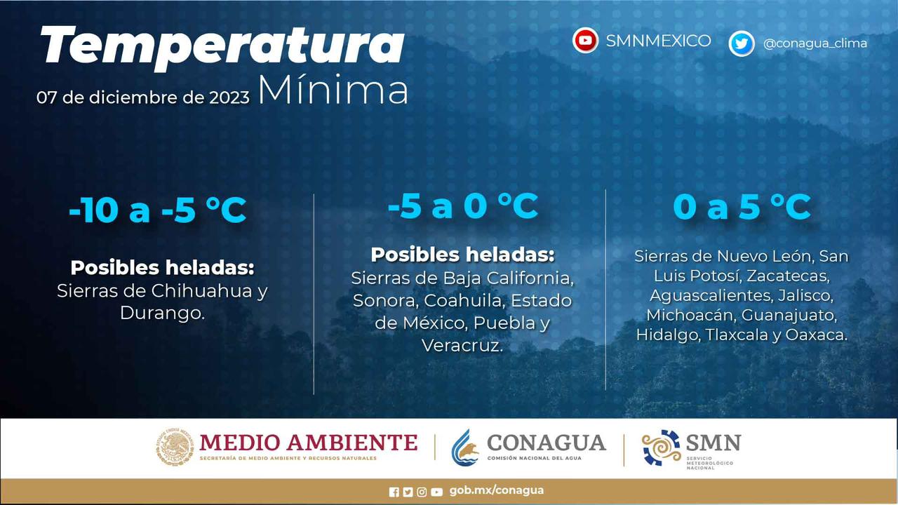 Sin embargo en la región de la Meseta, el Oriente y Centrode la entidad se prevén temperaturas por la noche que podrían oscilar entre los 0 a 5°C.
