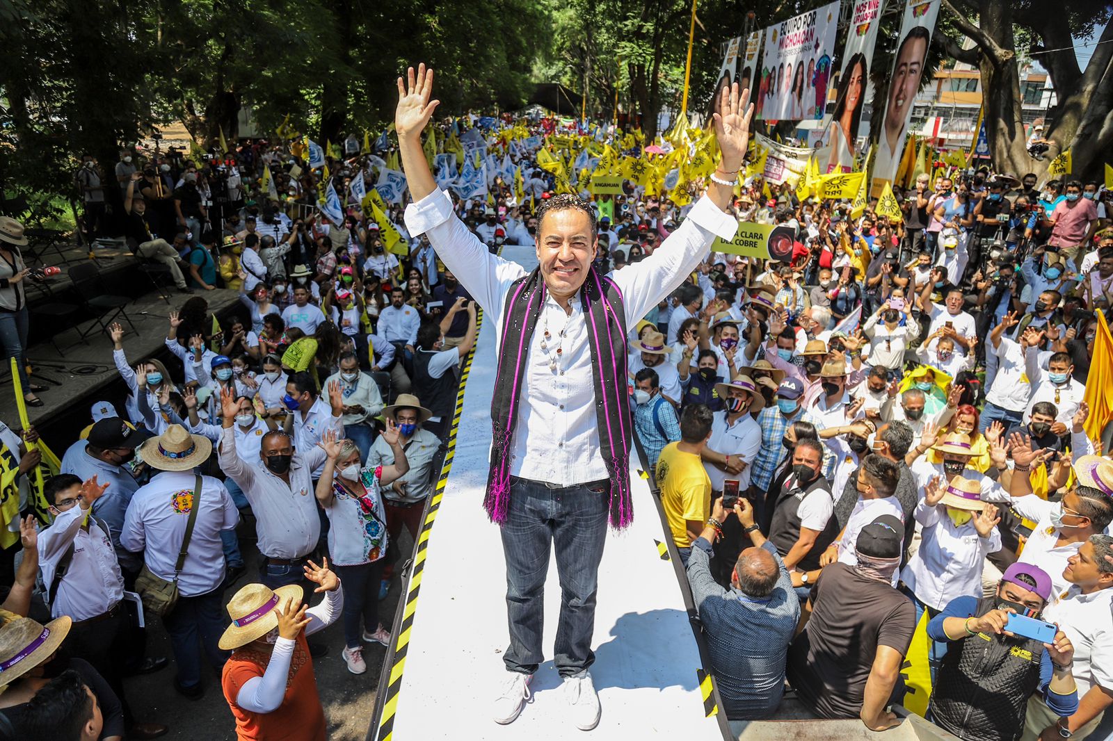 “Viendo a toda la gente reunida con la potencia y fortaleza del PRI, la dignidad y el humanismo del PAN, y el empuje y la defensa de las causas sociales del PRD, con esa claridad le decimos al equipo marrón que no los queremos y les decimos que vamos a ganar las próximas elecciones”, expresó el candidato ante el festivo entusiasmo de las multitudes congregadas.