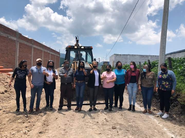Durante una gira de trabajo, la diputada local también puso en marcha la construcción de la red de drenaje sanitario y agua potable, así como banquetas y pavimentación con concreto hidráulico en la calle Caltzontzin en este mismo municipio.