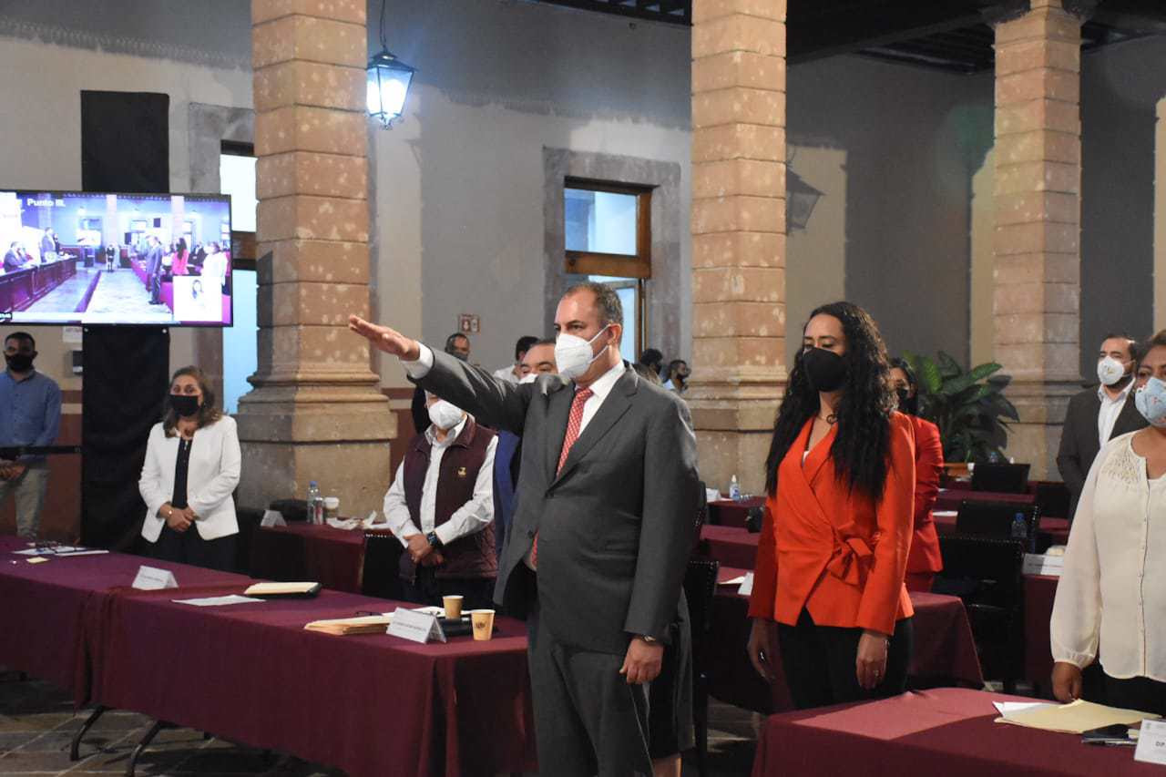 Marco Antonio Tinoco Álvarez, quien rindió protesta de ley ante el Congreso local, fue electo por las dos terceras partes de las diputadas y los diputados presentes, y durará en el cargo cuatro años, contados a partir del día de su designación.