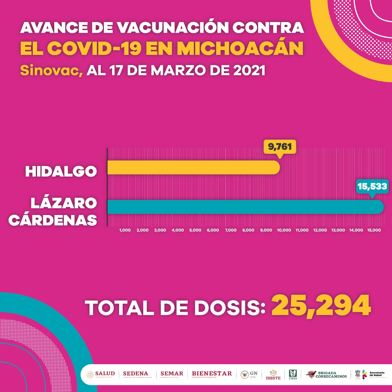 Los 21 municipios que han sido beneficiados hasta el momento son: Huetamo, Jacona, Uruapan, Zamora, Ecuandureo, Ixtlán, Hidalgo, Lázaro Cárdenas, Villamar, Aporo, Tingambato, Buenavista, Apatzingán, Parácuaro, Múgica, Angangueo, Coalcomán, Tepalcatepec, La Huacana, Aguililla y Churumuco.