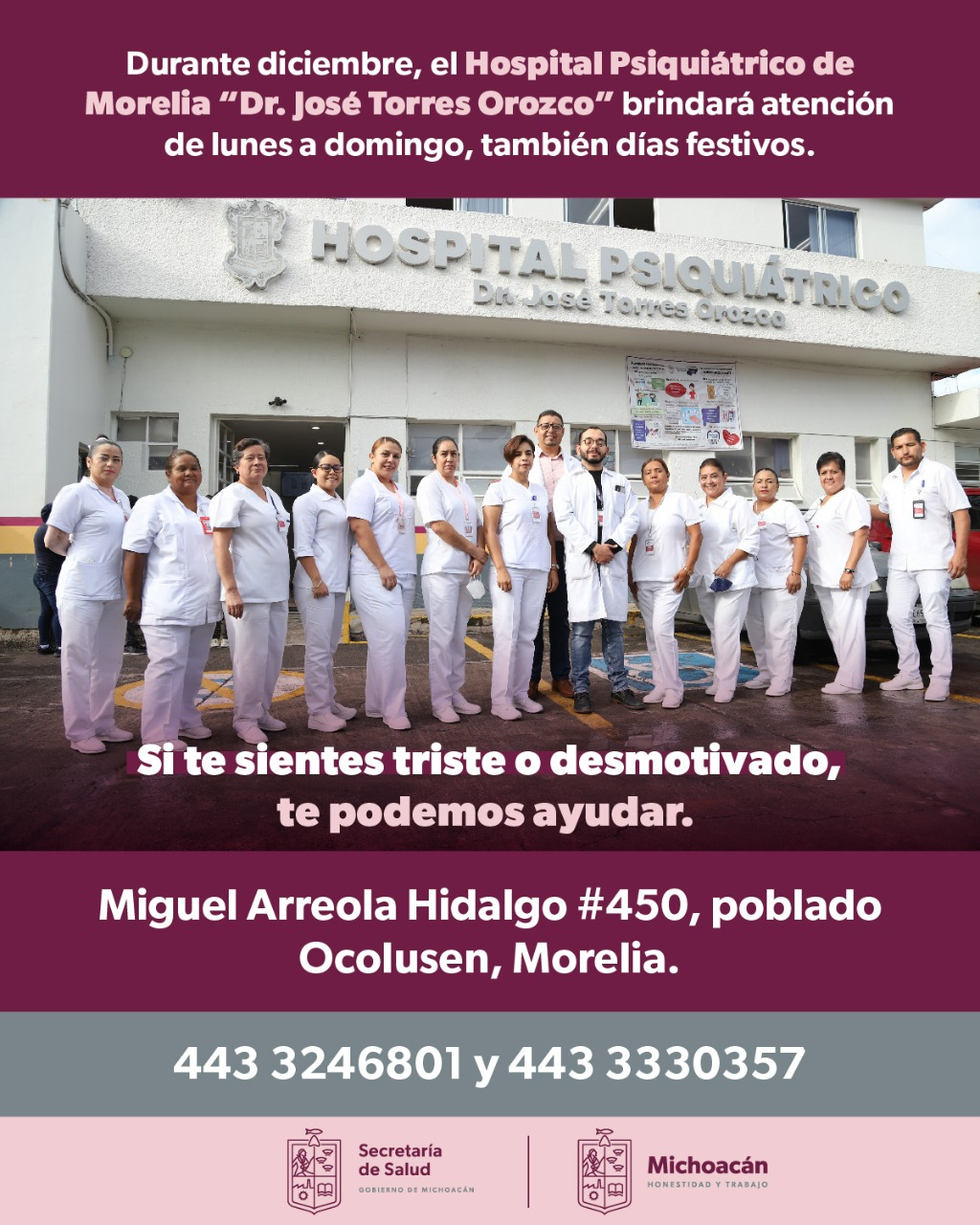 El Hospital Psiquiátrico pone a disposición las líneas telefónicas 4433246801 y 4433330357 para solicitar informes sobre los servicios de la unidad o tramitar una cita.