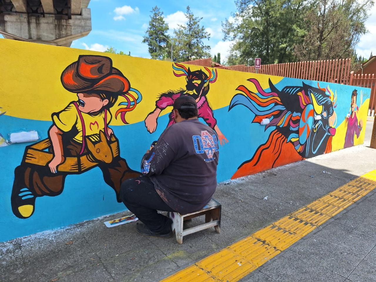 Morelia Michoacán 10 de Agosto de 2024.- La Secretaría de Cultura de Michoacán (Secum) vistió de color y tradición el paseo cultural del bajopuente del distribuidor vial Paso Morelos, en Morelia, con intervenciones gráficas inspiradas en el movimiento de la vida, las máscaras de Ocumicho y los toritos de petate.