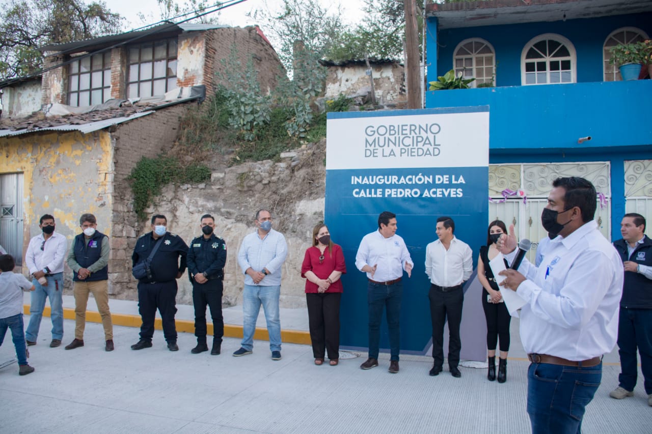 La Piedad, Michoacán a 17 Marzo del 2021.- En la colonia Banquetes de La Piedad, el presidente de la ciudad Samuel Hidalgo Gallardo, en compañía de vecinos y algunos funcionarios, inauguró y entregó de manera oficial los trabajos terminados en un tramo de la calle Pedro Aceves.