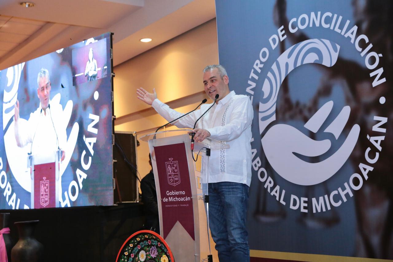 Durante la presentación de avances y retos del nuevo sistema de justicia laboral, por el Centro de Conciliación Laboral del estado y el Poder Judicial de Michoacán, el mandatario aseguró que a partir de la última reforma, la entidad se ha distinguido por innovar en herramientas para garantizar los derechos de los trabajadores y el acceso a la justicia laboral.