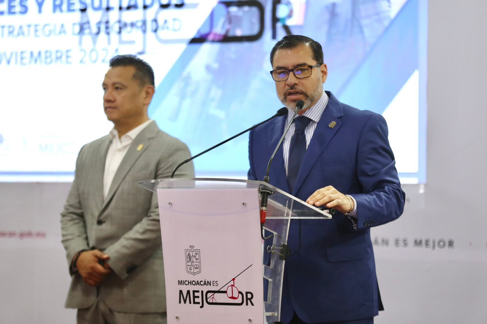 Morelia, Michoacán a 11 de Diciembre de 2024. Con 90 casos de homicidio doloso durante noviembre, Michoacán registra la cifra más baja durante los últimos ocho años, así lo dio a conocer el secretario de Seguridad Pública, Juan Carlos Oseguera Cortés.