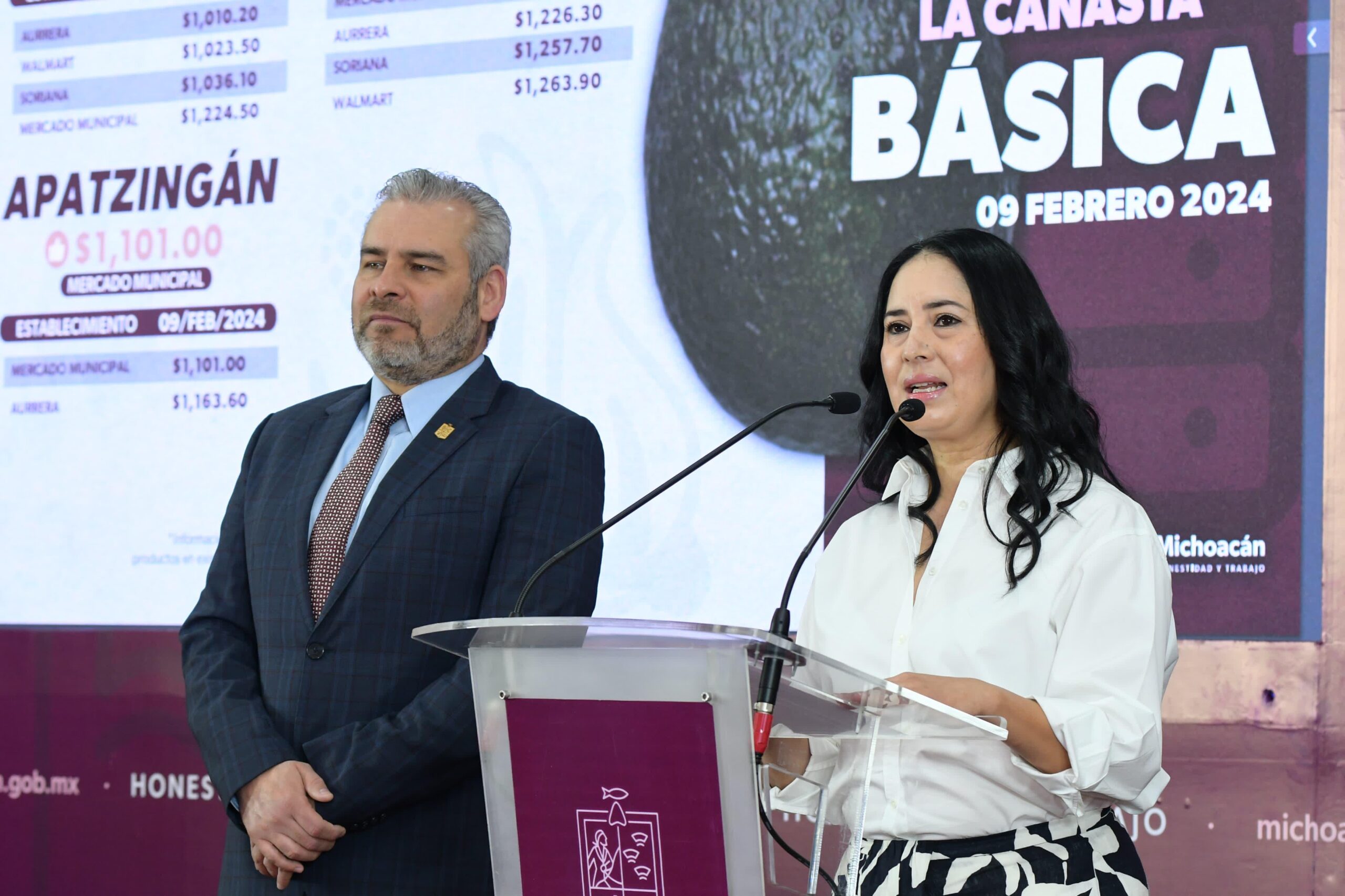 En rueda de prensa encabezada por el gobernador Alfredo Ramírez Bedolla, la subsecretaria del Trabajo y Previsión Social de la Sedeco, Yunuén Mejía Béjar, en representación del secretario Claudio Méndez Fernández, puntualizó que el costo más alto fue de mil 228 pesos en Walmart en Zamora.