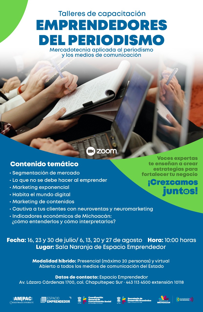 Este programa de talleres, está encaminado a brindar alternativas de fortalecimiento empresarial a medios de comunicación, ofrecido bajo la efectiva coordinación y despliegue logístico de Espacio Emprendedor, uno de los programas sello de la administración del Gobernador Silvano Aureoles Conejo.