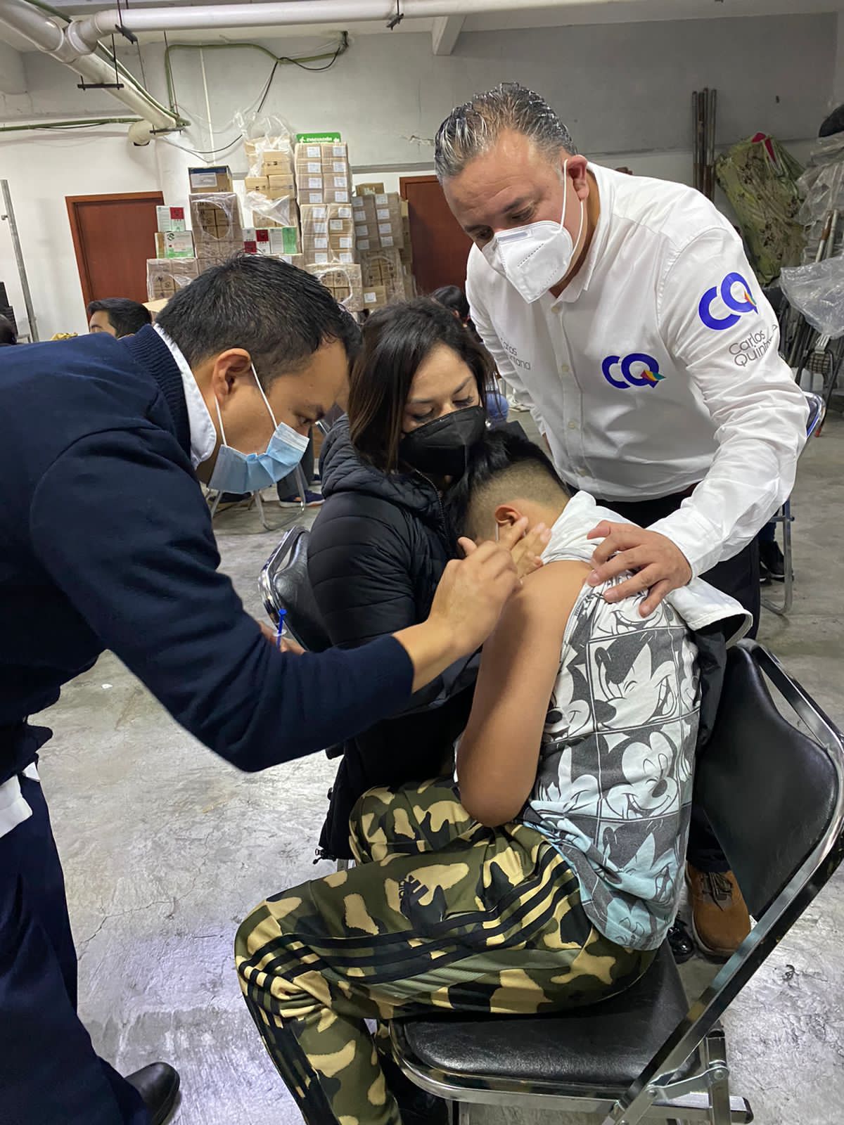 Morelia, Michoacán 24 de noviembre de 2021.- Como parte de su compromiso para atender la salud de los morelianos, este miércoles, por lo menos cinco niños y adolescentes michoacanos recibieron la vacuna contra el COVID19, luego de haber ganado el amparo promovido por el diputado federal de Acción Nacional, Carlos Quintana Martínez, proceso en el que se encuentran a la espera cerca de 30 menores más.