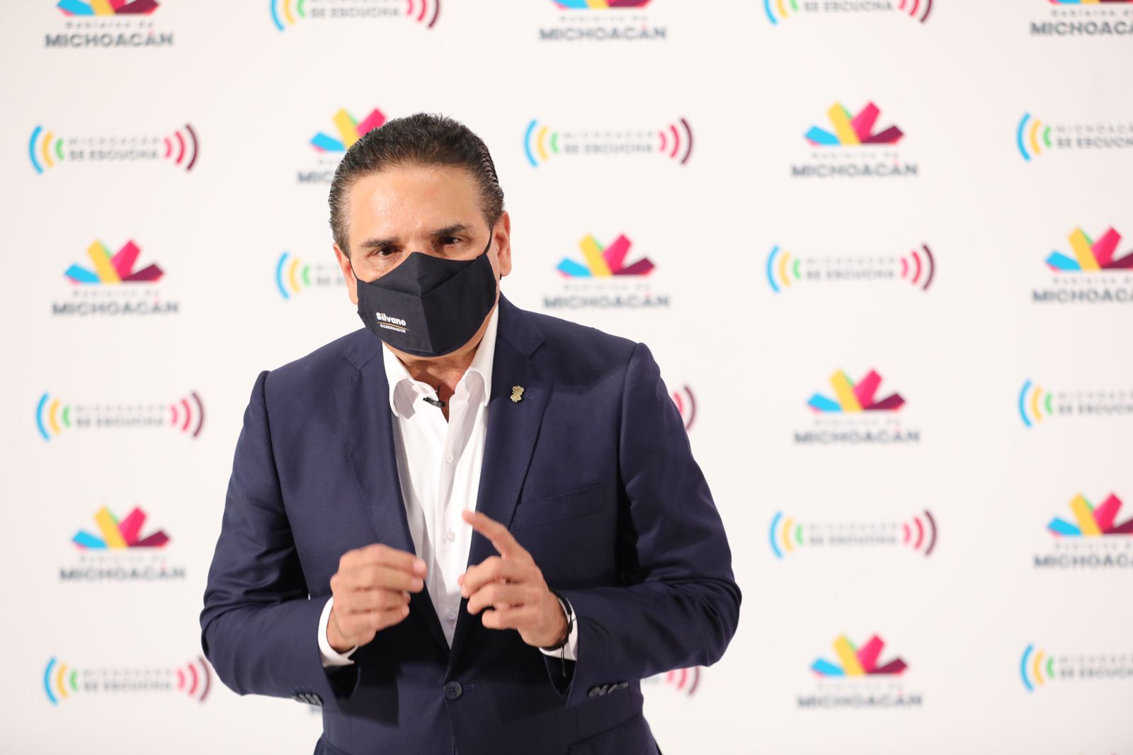 Morelia, Michoacán a 9 de agosto de 2021.- El estado de Michoacán, registra cifras “nunca antes vistas” en esta tercera ola de contagios por COVID-19, advirtió el Gobernador, Silvano Aureoles Conejo, quien precisó que no hay condiciones para el regreso a clases presencial de niñas y niños.