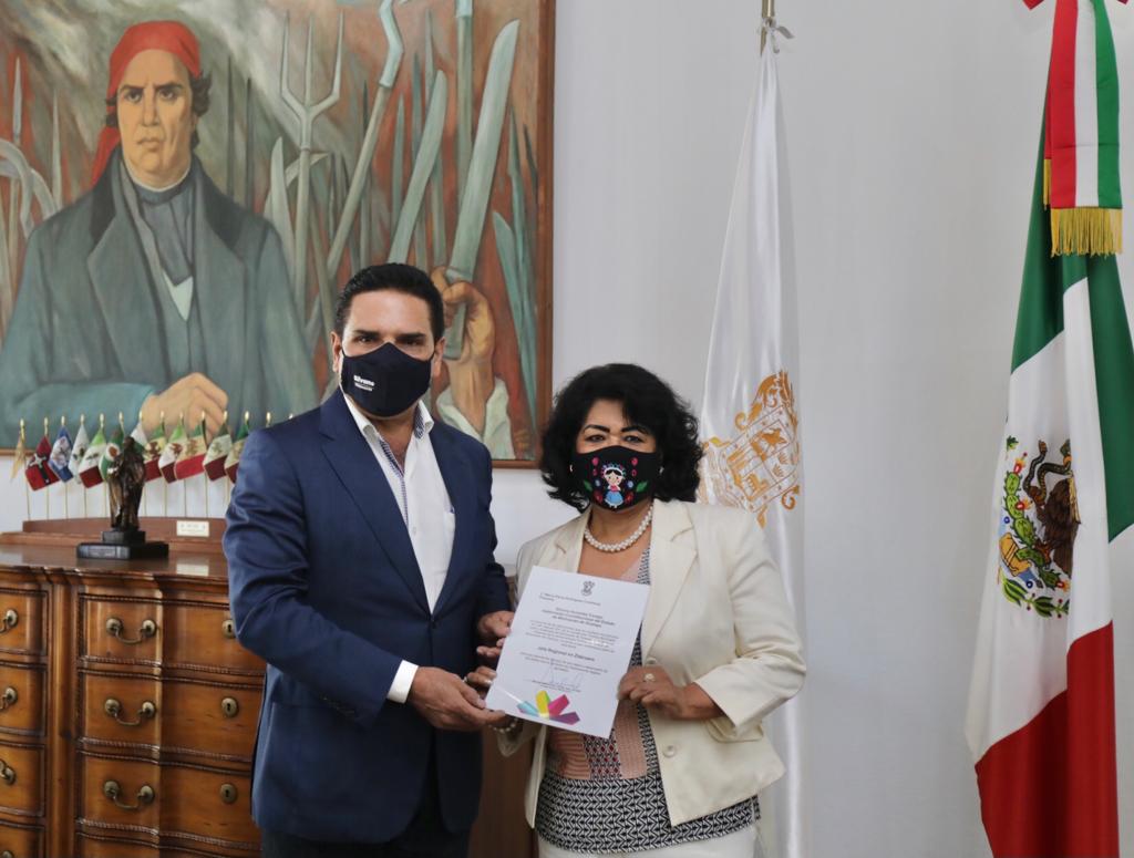 Morelia, Michoacán, a 4 de mayo de 2021.- El gobernador de Michoacán, Silvano Aureoles Conejo, nombró a Yolitzma de la Torre Malagón y a María Elena Rodríguez Contreras como jefas regionales en Huetamo y Zitácuaro, respectivamente.