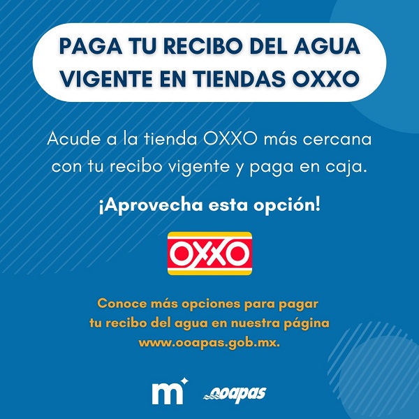 Los usuarios que lo deseen, pueden pagar su recibo de agua en la tienda OXXO más cercana a su hogar, aprovechando el horario extendido que tiene la cadena comercial. Esta opción de pago solo puede hacerse con recibos vigentes.