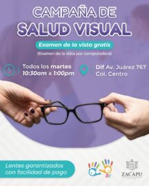 Zacapu, Michoacán, 13 de Enero de 2025- El DIF Zacapu invita a la población a acudir a la Campaña de Salud Visual, donde se realizarán exámenes de la vista por computadora de manera gratuita. Con la finalidad de mejorar la calidad de vida de las y los zacapenses,...