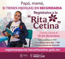 Morelia, Michoacán, 16 de Diciembre de 2024.- El periodo para el registro de la beca Rita Cetina finaliza el miércoles 18 de diciembre, por lo que la Secretaría de Educación del Estado (SEE) hace un llamado a las y los padres de familia para que inscriban a sus...