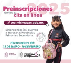 Morelia, Michoacán, 13 de Diciembre de 2024.- Como parte del Gobierno Digital, la Secretaría de Educación del Estado (SEE), a cargo de Gaby Molina, agiliza el proceso de preinscripciones a nivel preescolar, primaria y secundaria con la generación de citas vía electrónica, para evitar las largas filas y...