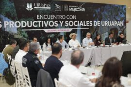 Uruapan, Michoacán, 26 de Noviembre de 2024.- El gobernador Alfredo Ramírez Bedolla y representantes de las cámaras de industria, comercio y servicios, así como productores de Uruapan, acordaron reforzar acciones de desarrollo y preservación de la paz en la región. En reunión con representantes de este sector y...