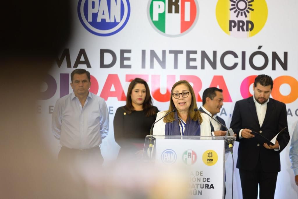 Cuquita Cabrera explicó que, privilegiando el bien común de la ciudadanía, los tres partidos políticos determinaron suscribir un acuerdo en donde manifiestan al IEM la intención de participar en candidaturas comunes en cualquiera de los 112 municipios o de los 24 Distritos Locales.
