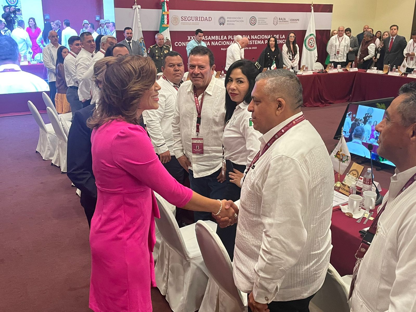 Puerto Nuevo, Baja California a 05 de Julio de 2023.- Trabajar en un proyecto transformador en el que las penitenciarías estatales cumplan el objetivo fundamental de ser verdaderos centros de reinserción social, a través de los ejes de educación, salud, deporte, trabajo y capacitación, fue uno de los principales acuerdos durante la vigésimo séptima Asamblea Plenaria Nacional del Sistema Penitenciario, en la que Michoacán estuvo presente.Durante el encuentro celebrado en la ciudad de Puerto Nuevo, del estado de Baja California, los titulares del Sistema Penitenciario del país, intercambiaron información y establecieron acuerdos en temas como el tratamiento de inimputables, industria penitenciaria y personas privadas de la libertad pertenecientes a pandillas en centros penitenciarios.La certificación de los titulares de los centros de reinserción social, diagnóstico nacional de supervisión penitenciaria y recomendaciones a centros penitenciarios, fueron otros de los temas atendidos durante la reunión. La inauguración de la asamblea fue realizada por la gobernadora de esa entidad, Marina del Pilar Ávila Olmeda, quien subrayó que la coordinación de las y los encargados del sistema penitenciario, “representa un solo instrumento; que ya se está recuperando la cordialidad y la paz en las penitenciarías a lo largo y ancho del país”. Con la representación personal de la titular de la Secretaría de Seguridad y Protección Ciudadana (SSPC), Rosa Icela Rodríguez, el comisionado de Prevención y Readaptación Social, Antonio Hazael Ruíz Ortega, reiteró el compromiso del Gobierno de México, encabezado por el presidente Andrés Manuel López Obrador, para contar con un sistema penitenciario donde se respeten los derechos humanos y se impulse una efectiva reinserción social.