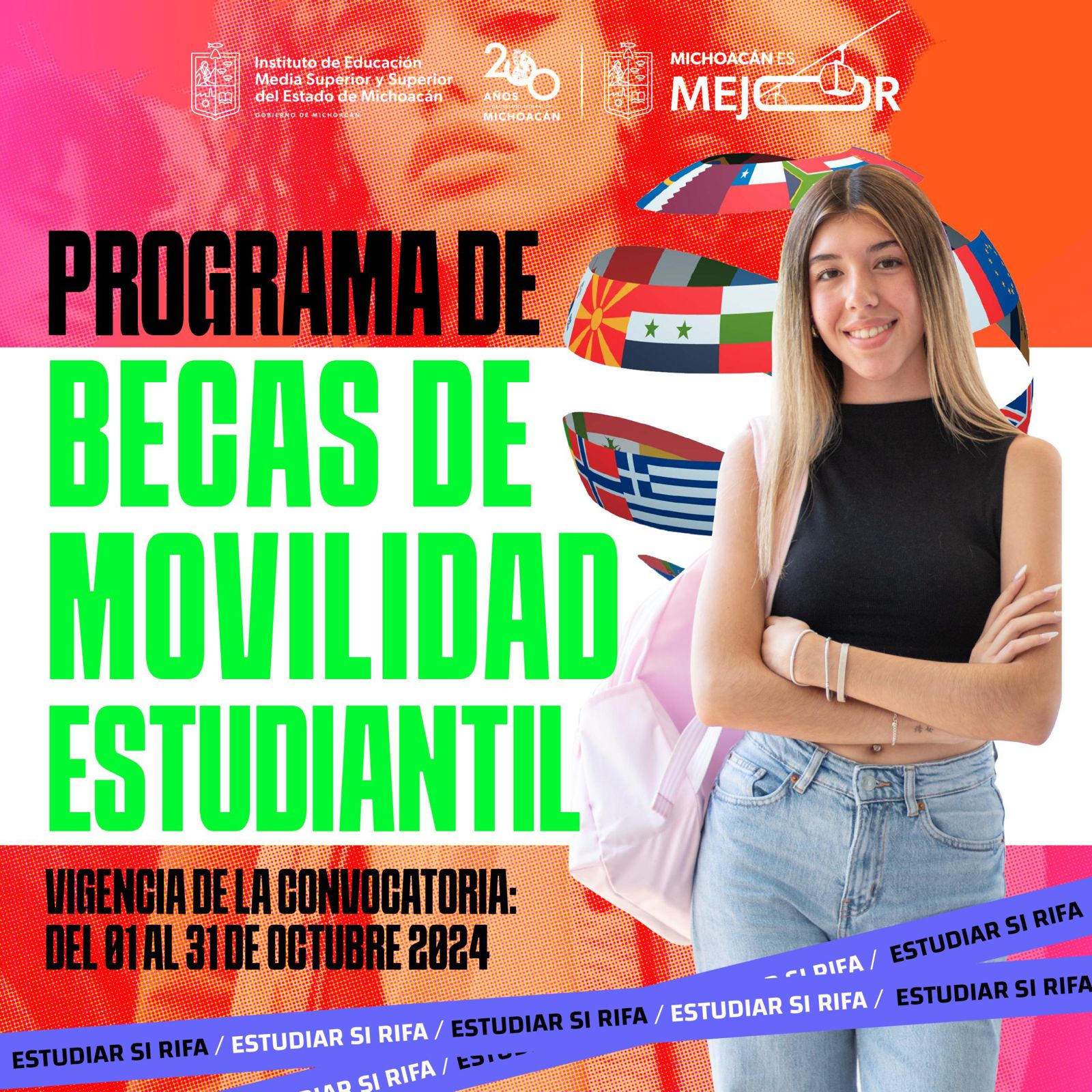 Morelia, Michoacán, 4 de Octubre de 2024.- El Instituto de Educación Media Superior y Superior del Estado de Michoacán (Iemsysem) invita a estudiantes de ambos niveles educativos a participar en la cuarta y última convocatoria del Programa de Becas de Movilidad Estudiantil contemplada para este año.