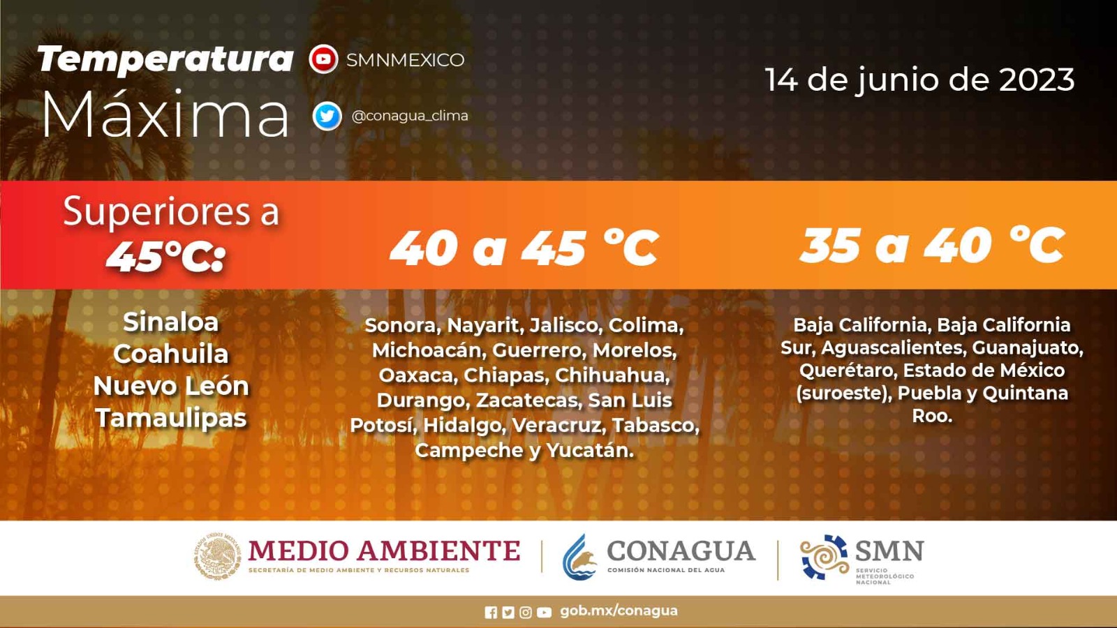 Y es que, según pronósticos del Servicio Meteorológico Nacional, para este día, el ambiente será caluroso a muy caluroso con temperaturas máximas superiores a los 45 grados en zonas de la Tierra Caliente y Costa del estado, mientras que, en el resto de la entidad, el termómetro rebasaría los 30 grados Celsius.