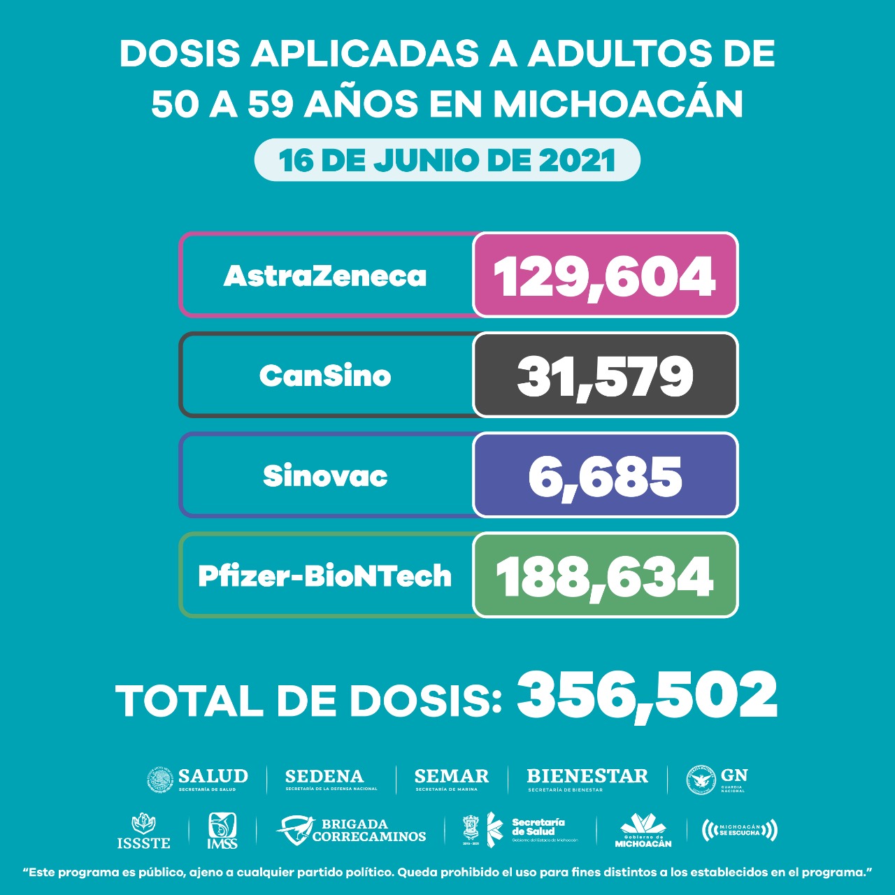 Población de 50 a 59 años de edad ha recibido 356 mil 502 dosis de vacunas anti COVID-19