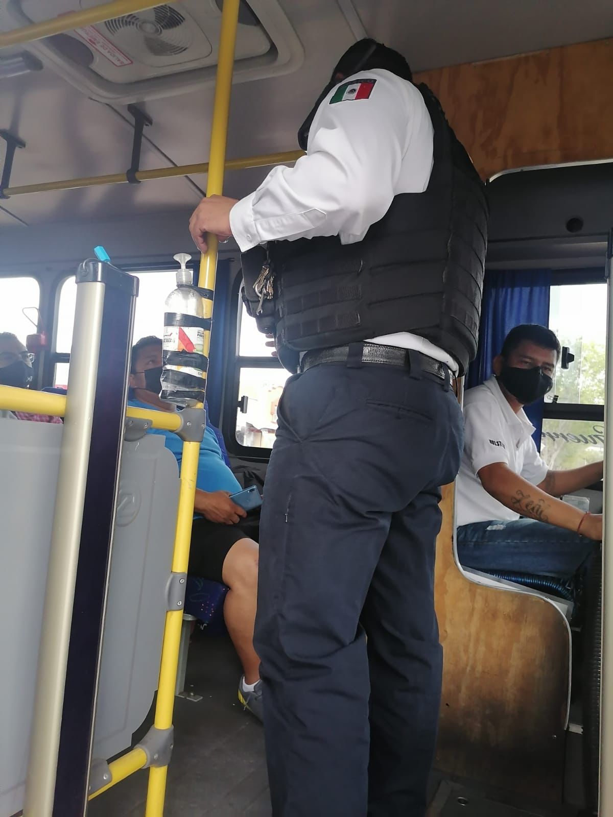 Los agentes de la Policía Morelia, acompañan a los pasajeros y se les invita a mantener el protocolo sanitario a fin de mitigar los contagios por COVID-19, utilizando el cubrebocas, gel antibacterial y mantener la sana distancia.