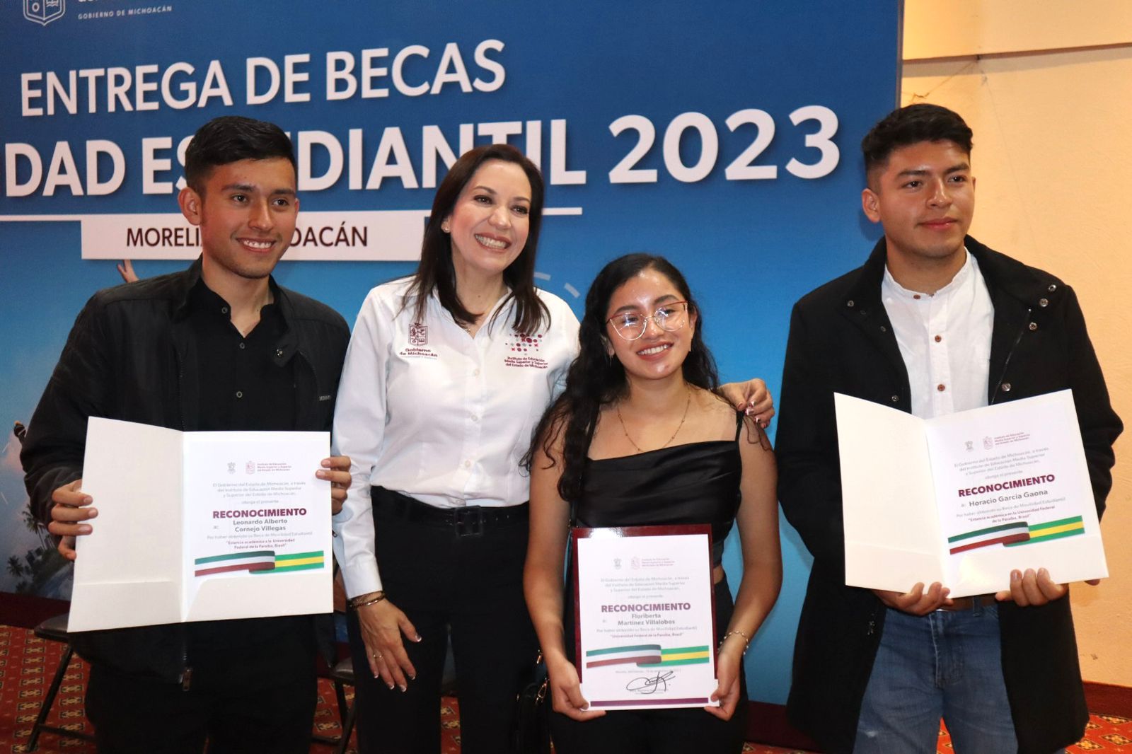 Morelia, Michoacán, 7 de enero de 2024.- Por primera vez se impulsó en Michoacán, durante 2023, un programa de becas para apoyar hasta con 30 mil pesos a estudiantes de nivel medio superior y superior que realizarán prácticas o estadías nacionales e internacionales.
