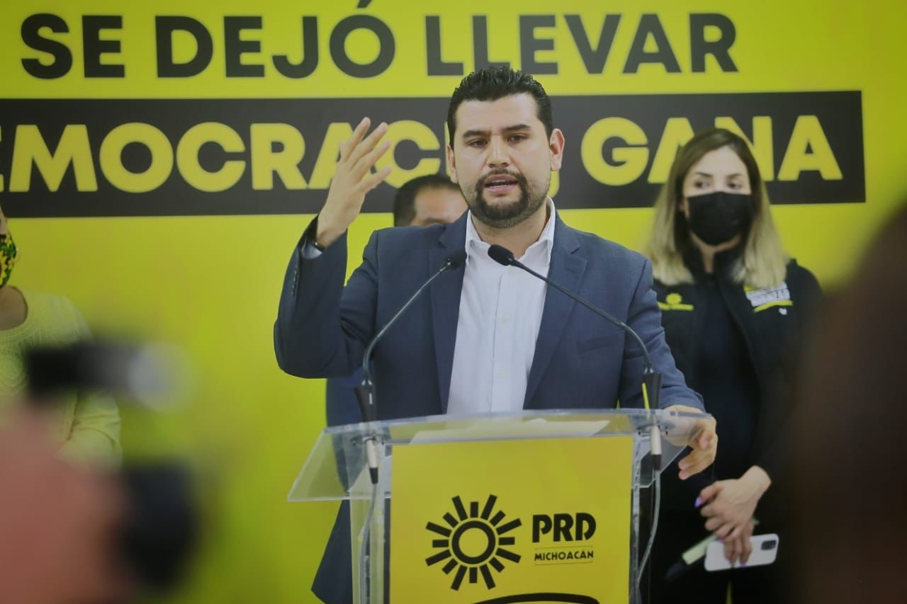 Morelia, Michoacán, 12 de Enero de 2022.- El líder del Partido de la Revolución Democrática (PRD), celebró el relanzamiento de la coalición electoral y legislativa Va por México, que anunciaron este día los dirigentes nacionales de los partidos Revolucionario Institucional (PRI), Acción Nacional (PAN) y de la Revolución Democrática (PRD).