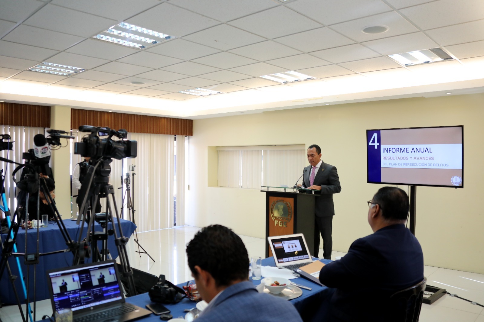Durante un encuentro con representantes de los medios de comunicación, informó que a cuatro años de trabajo, la institución a su cargo ha logrado un incremento importante en la judicialización de carpetas de investigación, pasando de 2 mil 744 en el 2019 a 6 mil 509 en el periodo que se informa, 2022.