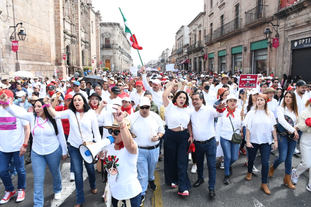Con el repique extraordinario de las campanas de la Catedral de Morelia y el toque del himno nacional, la marcha unió no solo a priistas, sino a quienes creen en la unidad para edificar instituciones por la vía pacífica y siempre con el compromiso de sumar y no restar.