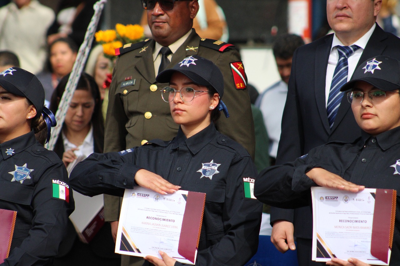 Morelia, Michoacán, 31 de Diciembre 2024.- Con el compromiso de fortalecer el estado de fuerza y la seguridad en todo Michoacán, este 2024 se profesionalizaron 2 mil 700 policías estatales y municipales en los cursos de formación inicial, equivalente, continua, rondas comunitarias y kuarichas del Instituto Estatal de Estudios Superiores en Profesionalización Policial del Estado de Michoacán (IEESSPP).