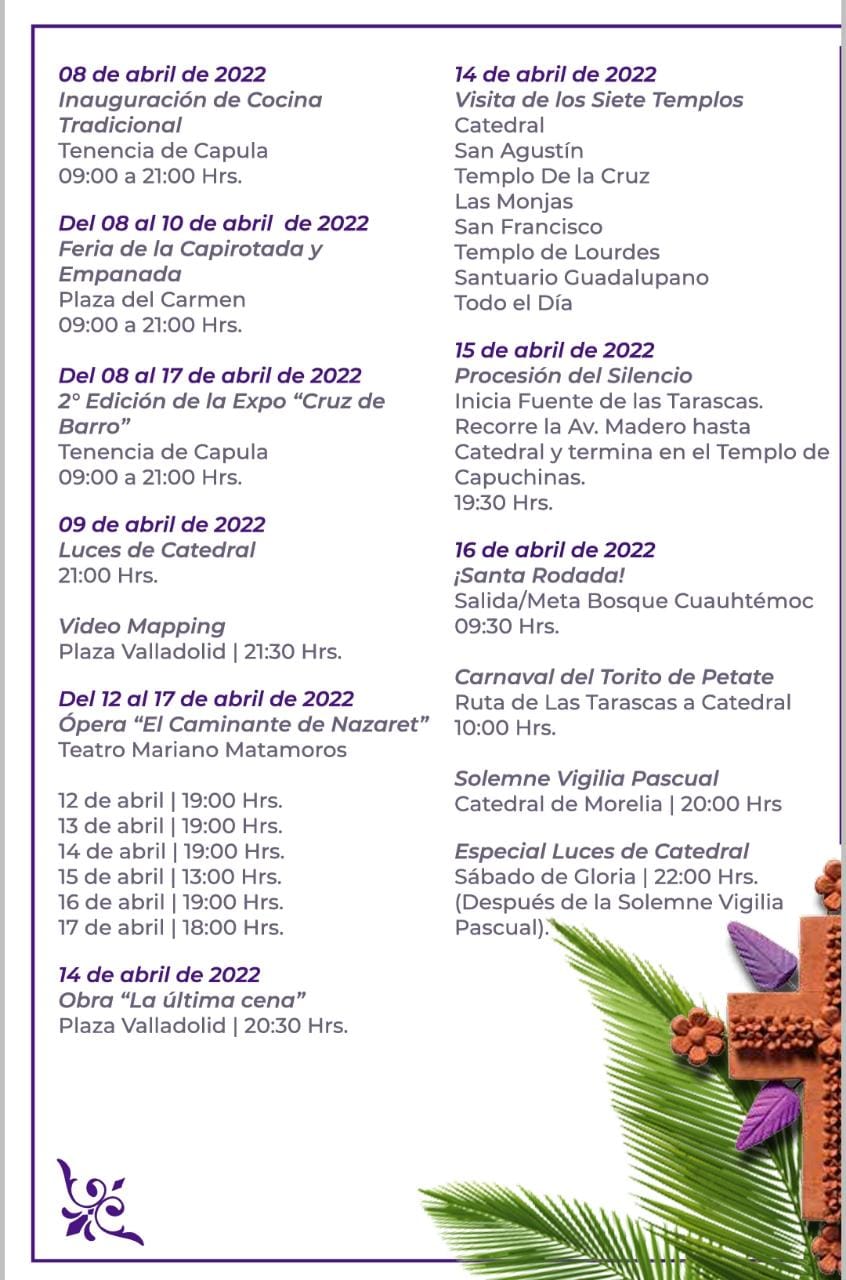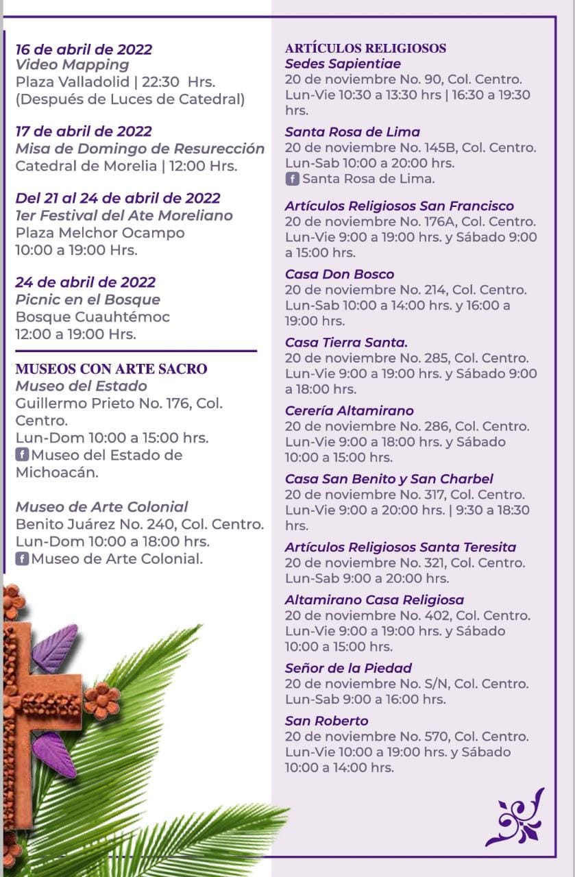 Morelia se llena de actividades culturales y del talento de los artistas locales que esta Semana Santa y de Pascua, habitarán el espacio público a través de la programación que ha preparado la Secretaría de Cultura de Morelia (SeCultura), para las y los habitantes y turistas que se den cita estas fechas en la Ciudad de la Cantera Rosa.