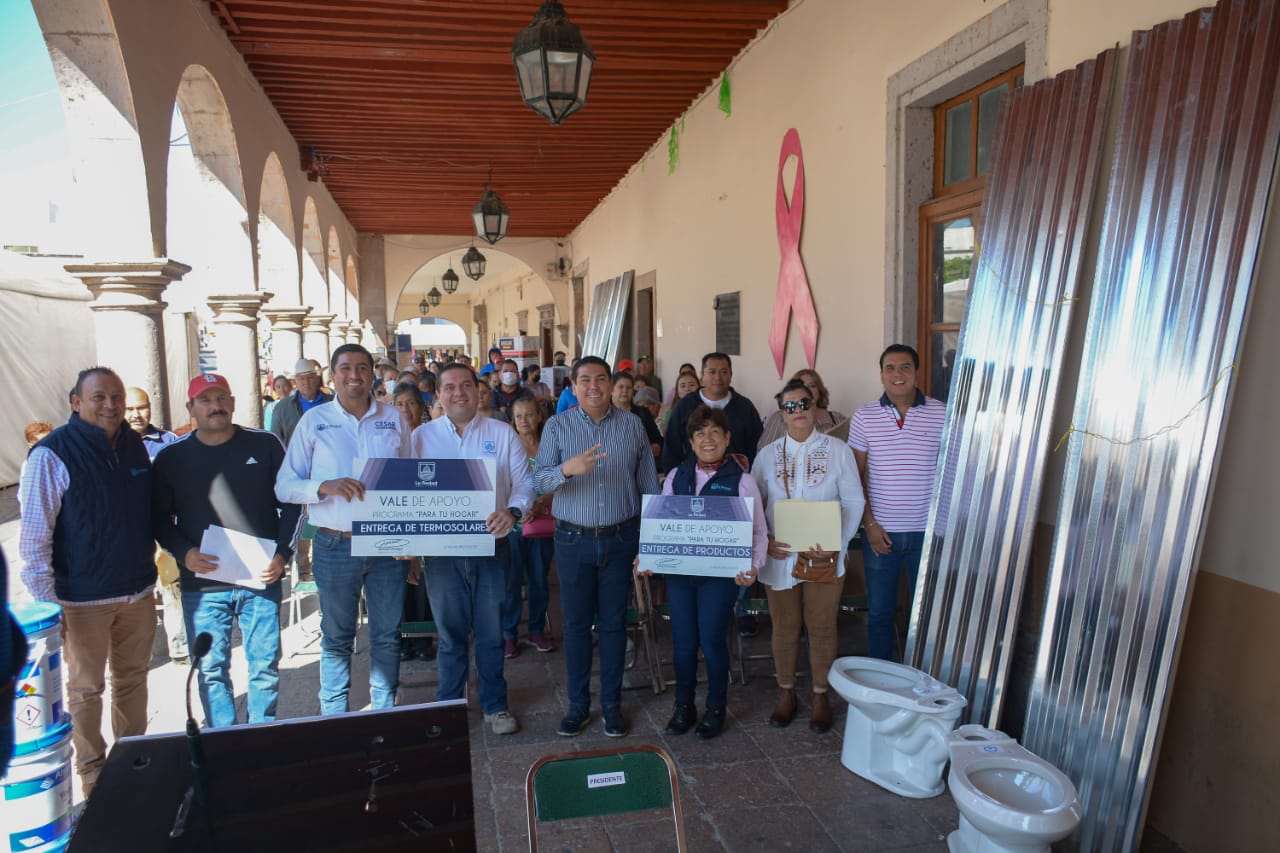 Se entregaron 54 termosolares, 443 láminas, 19 juegos de baños, 15 bombas y 18 cubetas de pintura e impermeabilizante, de los cuales el Gobierno Municipal subsidio con el 53% del total del costo del material, factor que favoreció en la economía de cada uno de las familias beneficiadas.