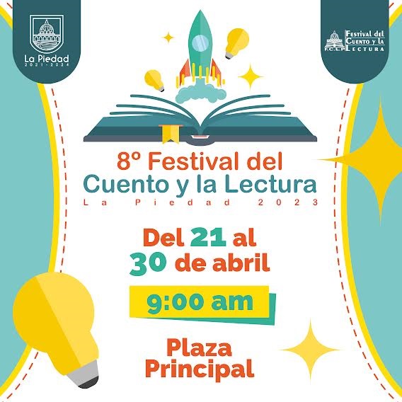 La Piedad Michoacán a 18 de Abril de 2023. Con el principal objetivo de promover el gusto por la lectura y el desarrollo de actividades cognitivas en los participantes, el Gobierno Municipal de La Piedad, a través de la Dirección de Promoción Económica, Cultura, INJUP y Educación invitan a la octava edición del Festival del Cuento y la Lectura.