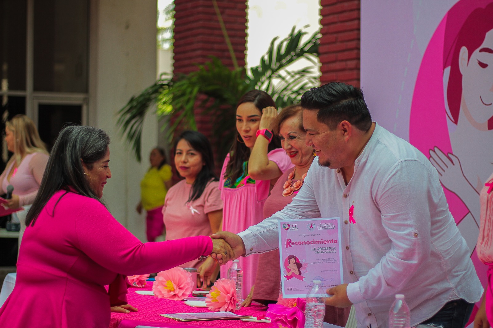 Durante este evento conmemorativo, la Lic. en Enfermería Anabella Vieyra Avalos, fue la encargada de impartir la plática informativa de prevención al Cáncer de mama; a quien se le hizo entrega de un reconocimiento por su participación, como también a las escuelas Sor Juana Inés de la Cruz, CETMAR 16, Cecati 70, Sor Juana Inés de la Cruz y Vizcaya de las Américas e Instancia del Adulto Mayor “Somos Grandes”.