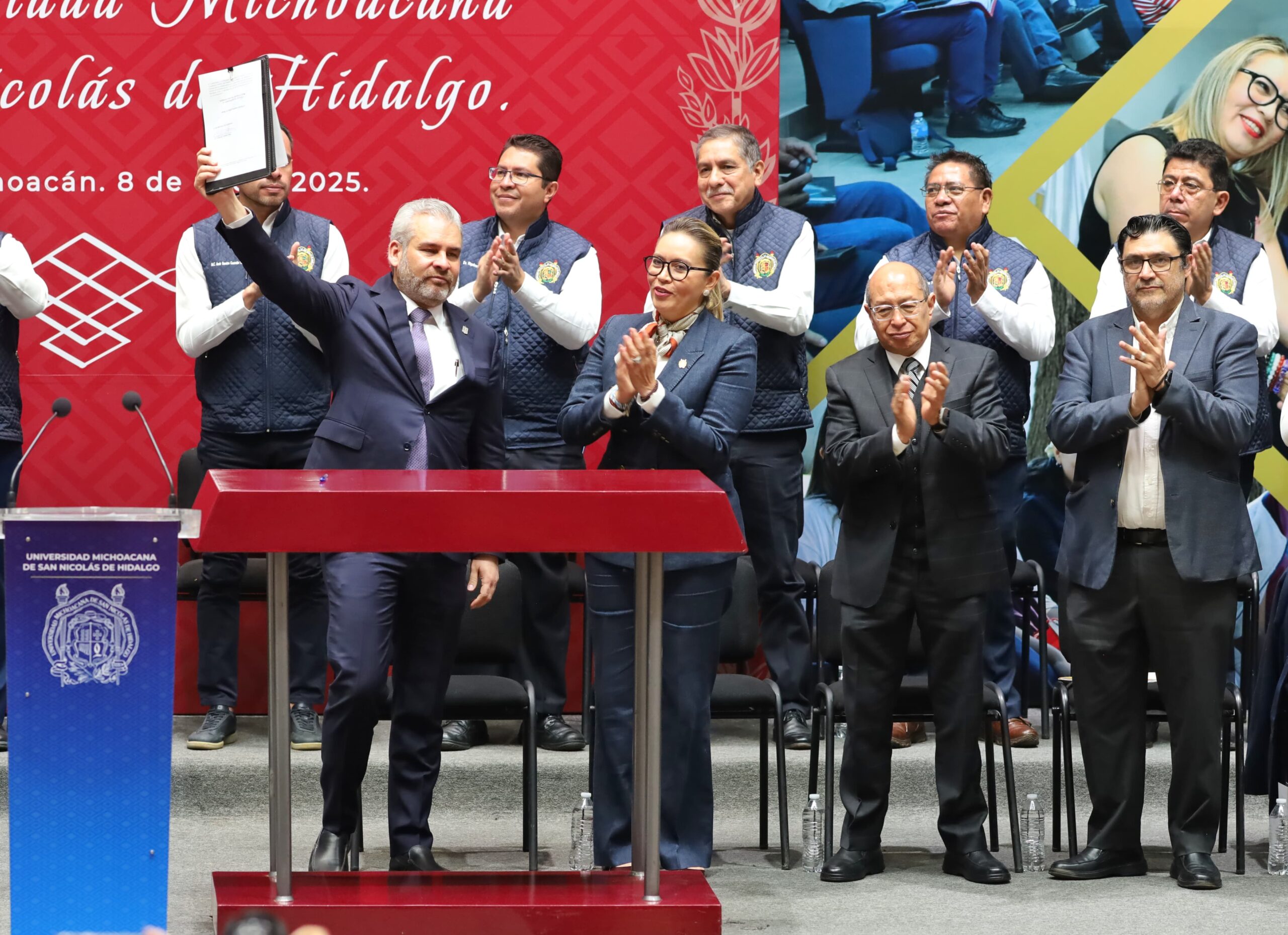 Morelia, Michoacán, a 8 de enero de 2025.- Con la Promulgación de la Reforma Constitucional a la se sienta un precedente para un nuevo futuro de la Universidad Michoacana de San Nicolás de Hidalgo (UMSNH), pues se rompe con 50 años de déficit y se garantiza la viabilidad financiera de la Máxima Casa de Estudios.