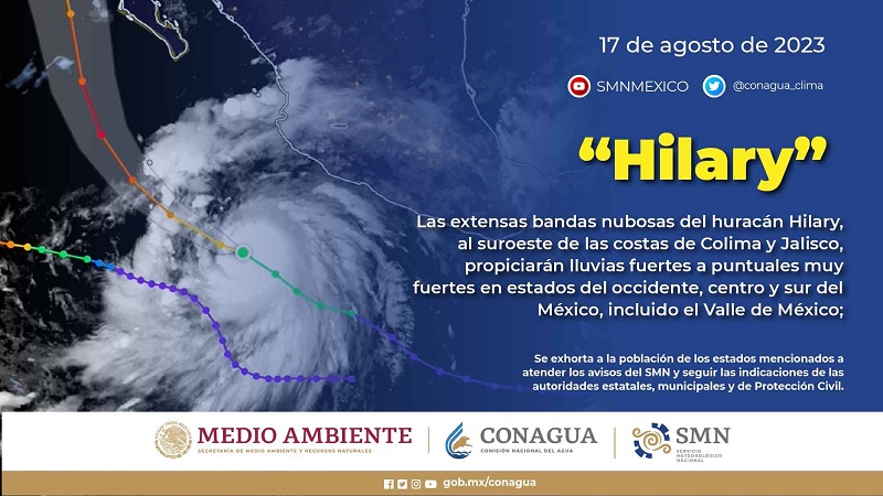 Morelia, Michoacán a 17 de Agosto de 2023.- La Secretaría de Gobierno a través de la Coordinación Estatal de Protección Civil invita a la población en general a tomar medidas preventivas y de autocuidado ante la probabilidad de lluvias fuertes en las próximas horas ocasionadas por el huracán “Hilary”.