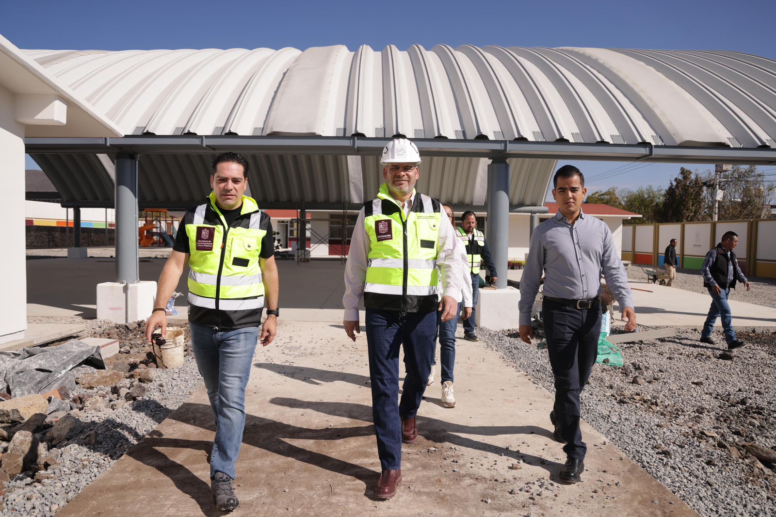 En una visita que realizó a los planteles Estefanía Castañeda Núñez y primaria Rafael C. Haro, el titular del Ejecutivo constató el avance de las obras donde se edificaron aulas, espacios deportivos, áreas administrativas, entre otros.