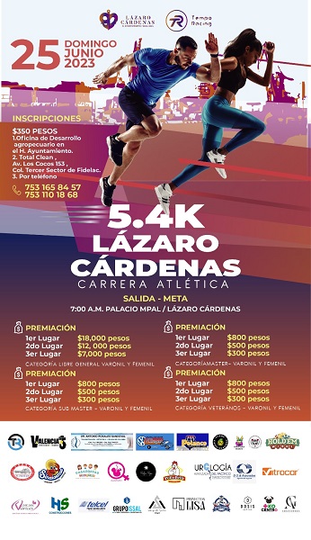 Cd. Lázaro Cárdenas, Michoacán a 16 de Mayo de 2023.- El Gobierno de Lázaro Cárdenas, en coordinación con Tempo Racing, invita a todos los runners a participar en la Carrera Atlética de 5.4 km que se llevará a cabo el próximo 25 de junio, donde se espera la participación de corredores de diferentes países, estados y municipios.