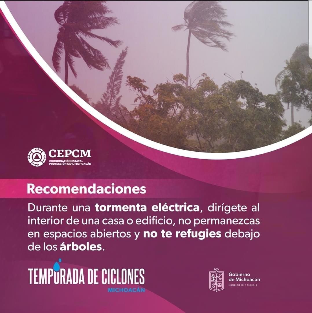 Morelia, Michoacán, 15 de junio de 2022.- La Secretaría de Gobierno, a través de la Coordinación Estatal de Protección Civil exhorta a la población michoacana a intensificar las medidas preventivas y de autocuidado en esta temporada de lluvias y huracanes.