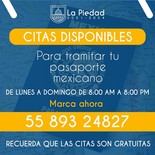 La Piedad Michoacàn a 26 de Julio de 2023. La Oficina Municipal de Enlace de la Secretaría de Relaciones Exteriores en el municipio de La Piedad, informa a quienes necesitan realizar el trámite de Pasaporte Mexicano, que pueden agendar su cita por llamada telefónica para ser atendidos.
