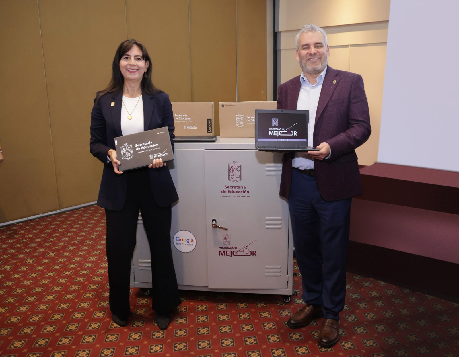 Por su parte, la titular de la Secretaría de Educación del Estado (SEE), Gaby Molina, aportó que los Chromebooks cuentan con tecnología enfocada en mejorar la práctica pedagógica; además habrá actualizaciones a los docentes y comunidades escolares para el mayor aprovechamiento de los equipos.