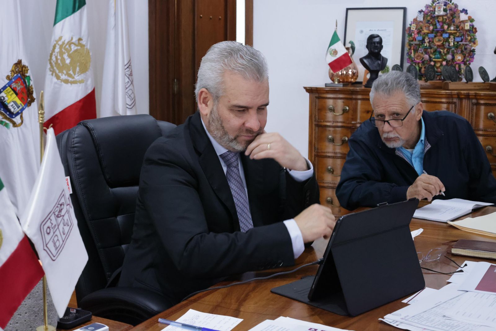 Morelia, Michoacán a 12 de Octubre de 2024.- El gobernador Alfredo Ramírez Bedolla y la secretaria de Desarrollo Agrario, Territorial y Urbano (Sedatu), Edna Elena Vega Rangel, revisaron el proyecto para la construcción de 41 mil 800 viviendas en Michoacán para programas crediticios del Infonavit y Fovissste, así como apoyos y subsidios de la Comisión Nacional de Vivienda (Conavi).
